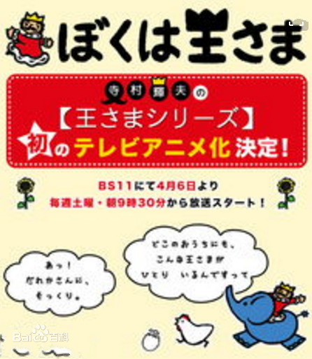“国王系列”是有着“啊!某人,完全一样。在哪里,有着这样的一个王”的措辞,发售50余年伸手孩子们喜爱的,在图书馆有很高借出人气的童话系列。我是国王第一作是1959年于《母之友》刊载。之后系列作品总计50部,贩售超过500万部。 现在,虽然作品的对象年龄和类型有所改变,新刊依旧作为畅销作品。 该系列描写了主人公是在某个国家居住着,某处的“王”。国王喜欢鸡蛋,喜欢玩,不喜欢学习。贪吃,总说着任性的话,但却不令人讨厌。好像孩子的样子的“国王"的愉快的故事。 而本次TV动画版《我是国王》在4月6日每周六上午9:30开始到10点放送。